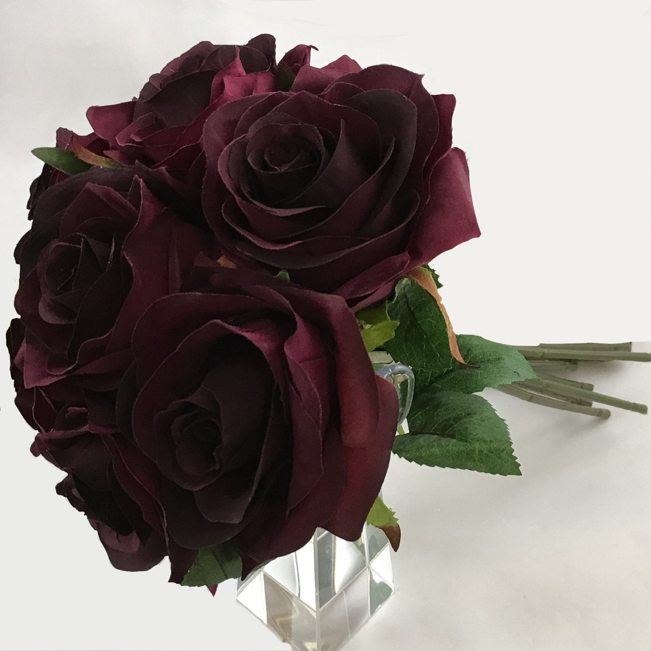 Burgundy Artificial Open Rose bundle with 7 individual stems. Perfect for adding to Silk and Real Touch flower Arrangements, wreaths and DIY Brides Wedding Bouquets