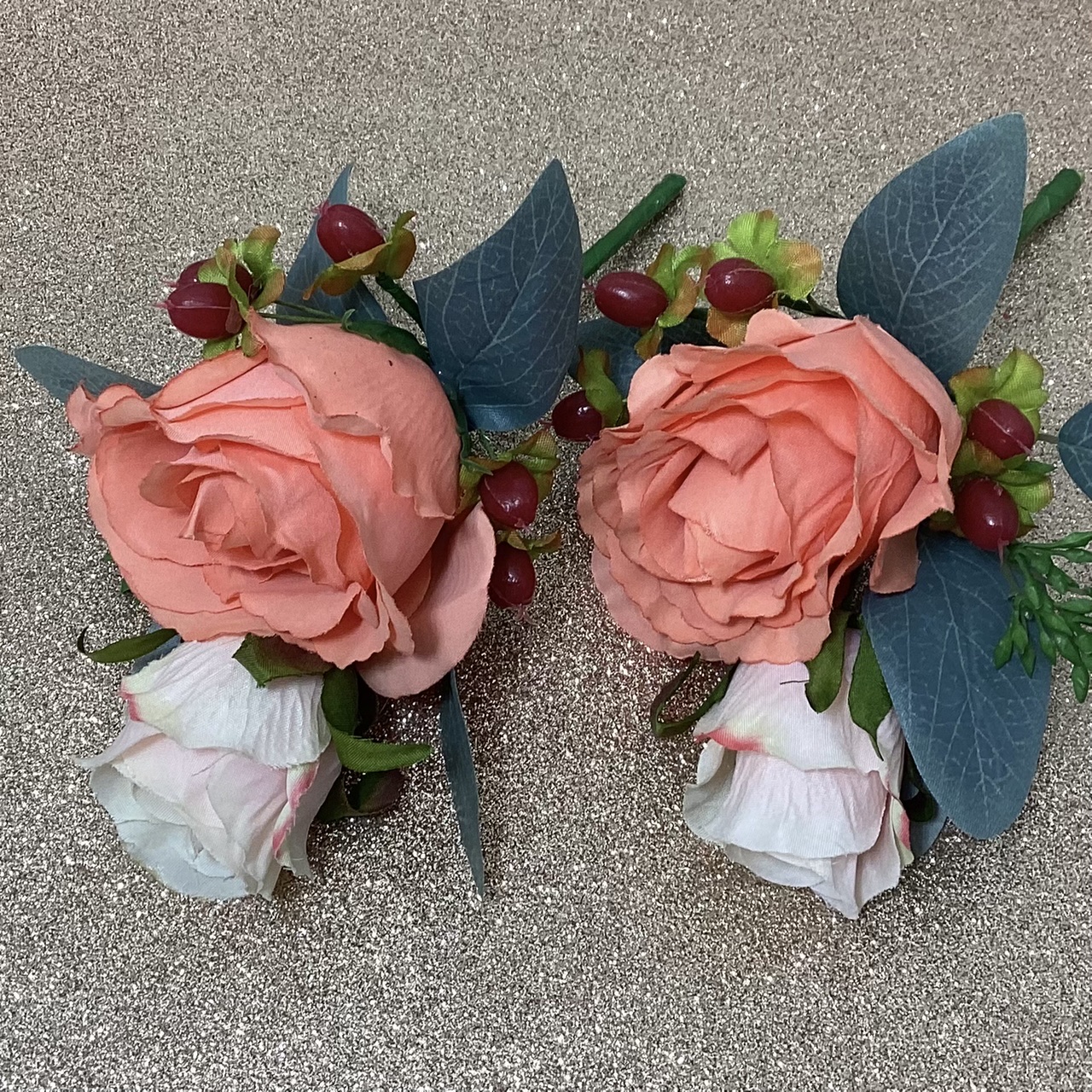 The Febe, Artificial Double Rose and Hypericum Berry Buttonhole