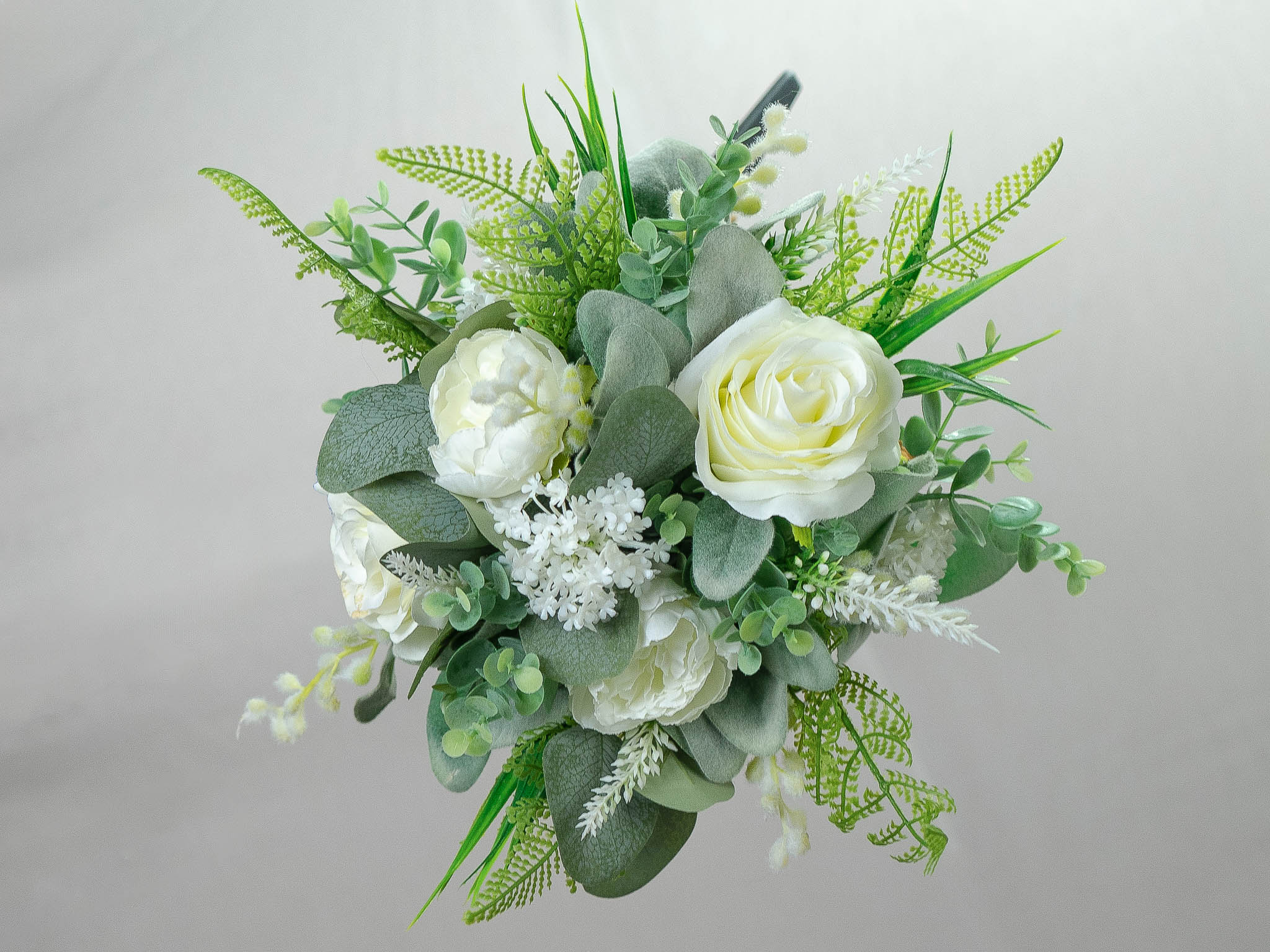 The Mollie artificial bridesmaid bouquet, composed of peonies and roses. Offers a beautifully elegant and sophisticated look. A combination of lush peonies with classic roses results in a bouquet that is both visually stunning and timelessly elegant.