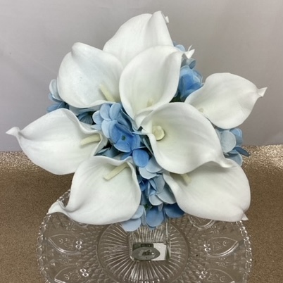 The Tiana Real Touch Calla Lily and Artificial Hydrangea Hand Tied Bouquet